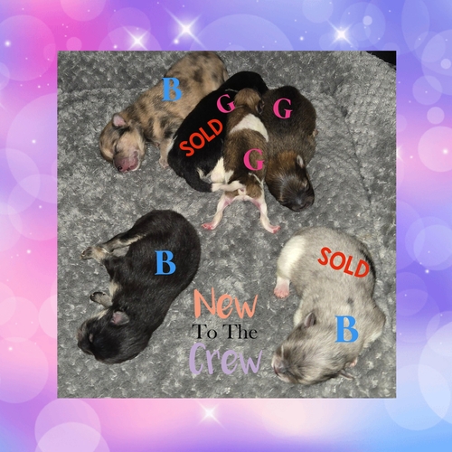 AKC LITTER BORN NOVEMBER 30, 2025 TO COQUETTE AND CARR 3 GIRLS AND 3 BOYS. 2 MERLE BOYS, 1 BLACK AND TAN BOY, 1 SABLE GIRL, 1 TINY SABLE PARTI GIRL AND 1 BLACK AND TAN WITH WHITE GIRL. |